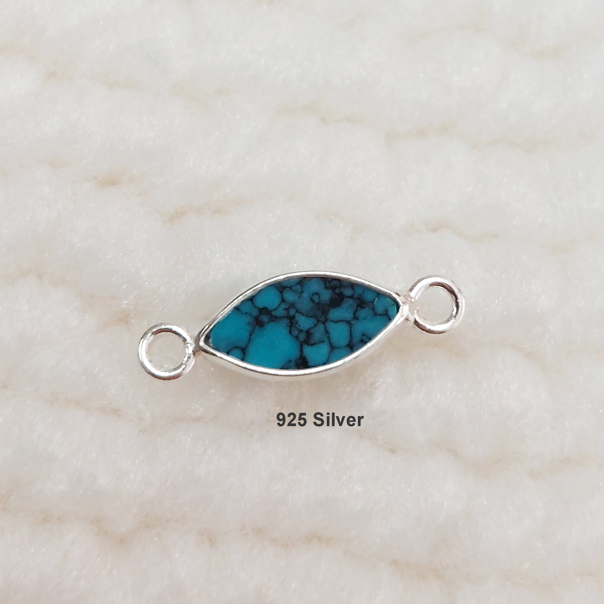 GF3MQR2BT / 93MQR2BT 3 x 6mm Synthetic Blue Turquoise Marquise Bezel Connector With 2mm Closed Rings